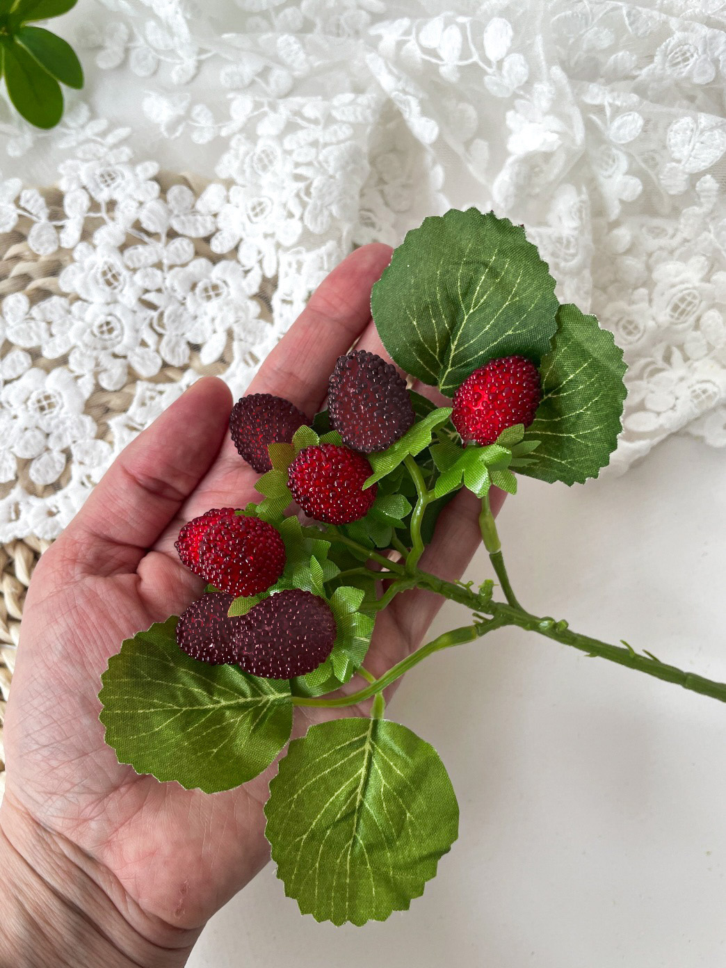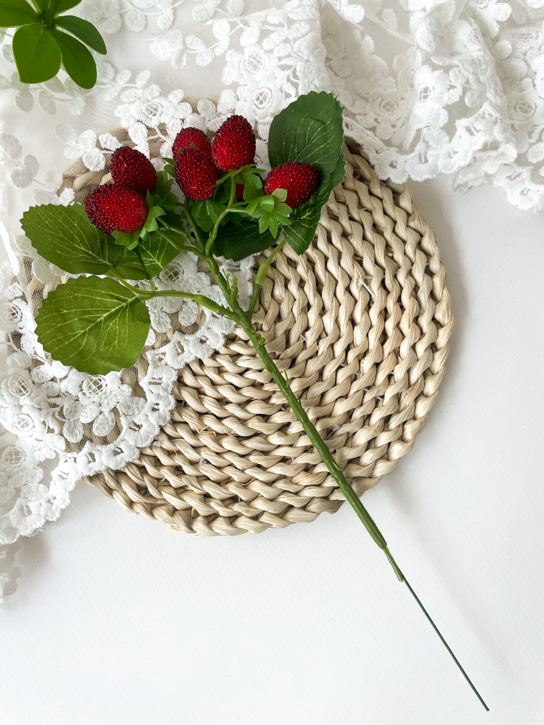 Сочная и яркая земляника на ветке (земляника искусственная) широко используется в качестве декора во флористике, творчестве и интерьере кухни, ресторанов и кафе. Искусственная клубника, земляника (искусственные ягоды) полностью схожа с настоящей. Декоративные муляжи клубники (декоративная клубника) часто используются при создании композиций с цветами, натюрмортов, венков, икебаны, панно.