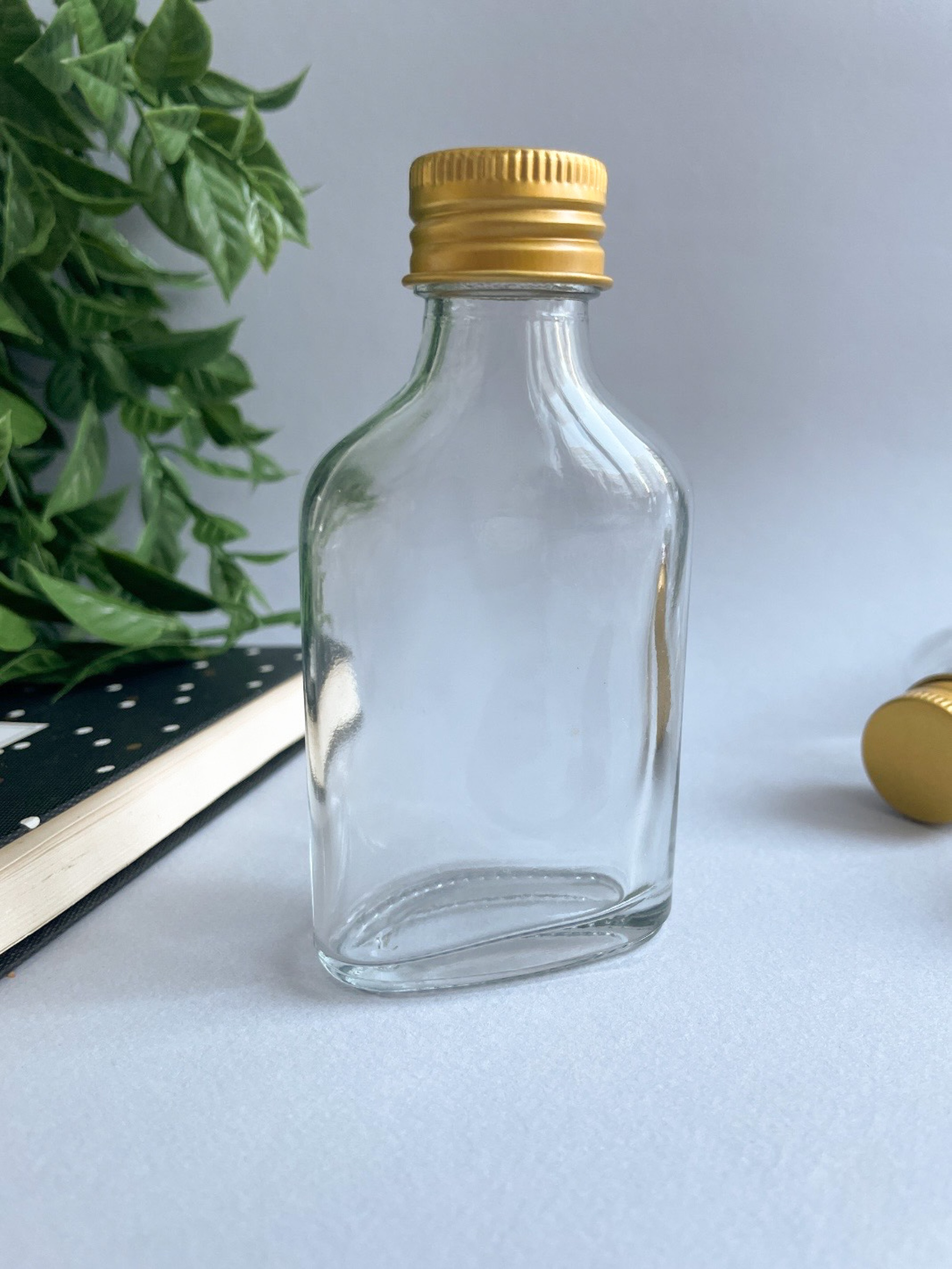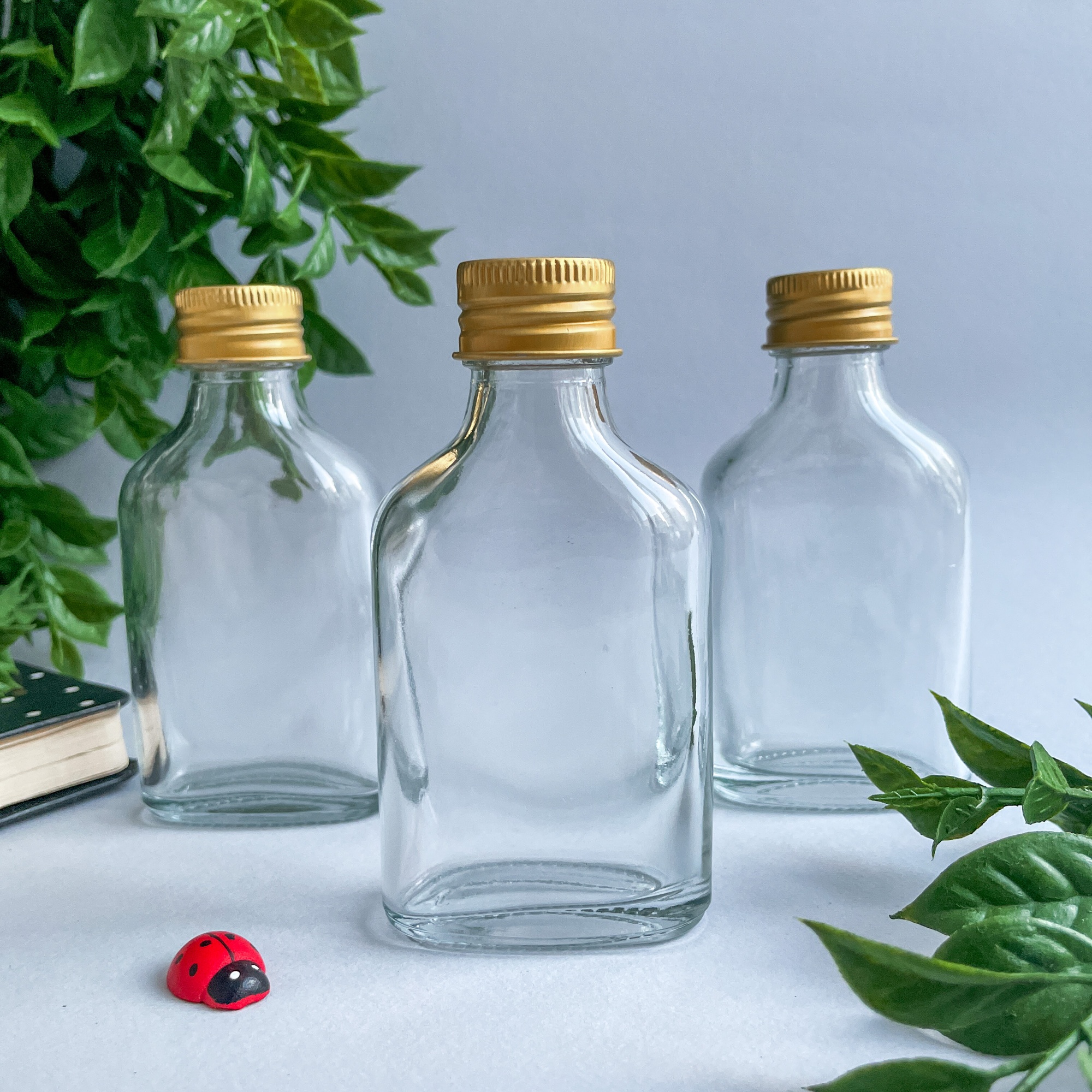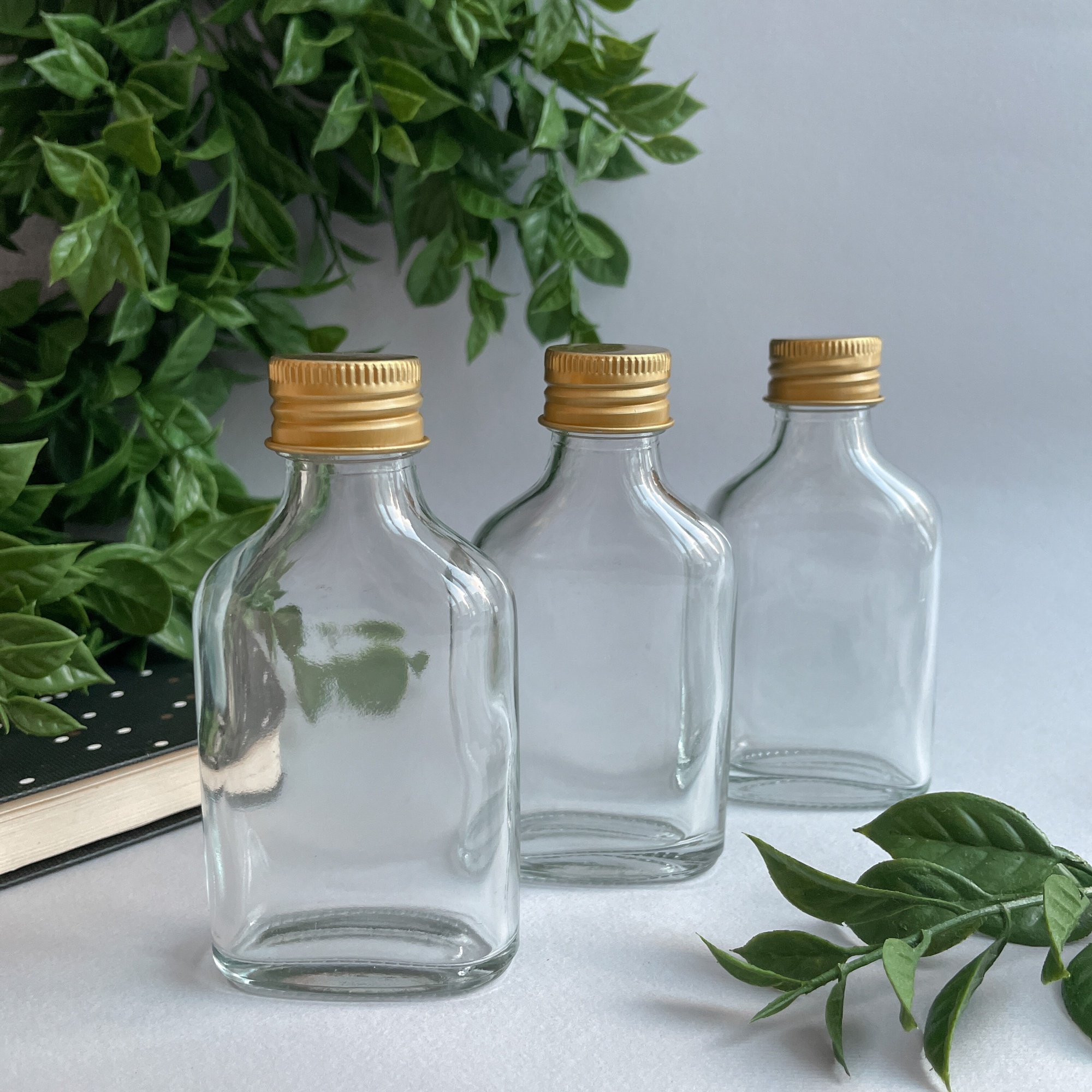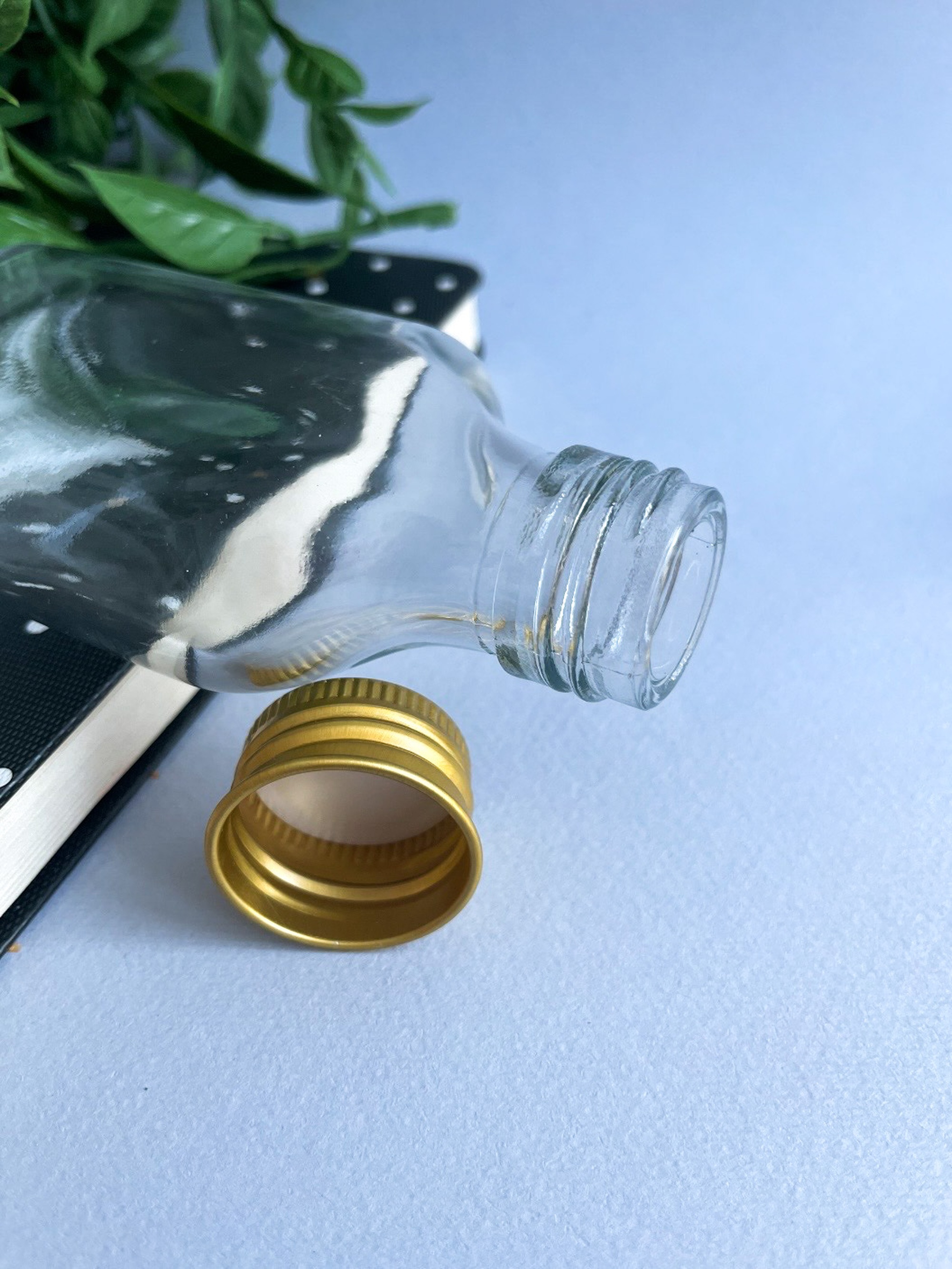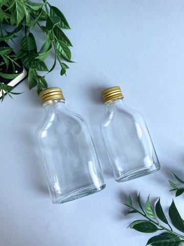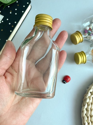 Набор из трех бутылочек выполнен из прозрачного стекла, горлышко закручивается золотой крышкой. Банки и бутылки выполняют помимо основной задачи – хранения всевозможных вещей, еще и декоративную функцию. Маленькие бутылочки будут настоящей изюминкой в интерьере любого дома.