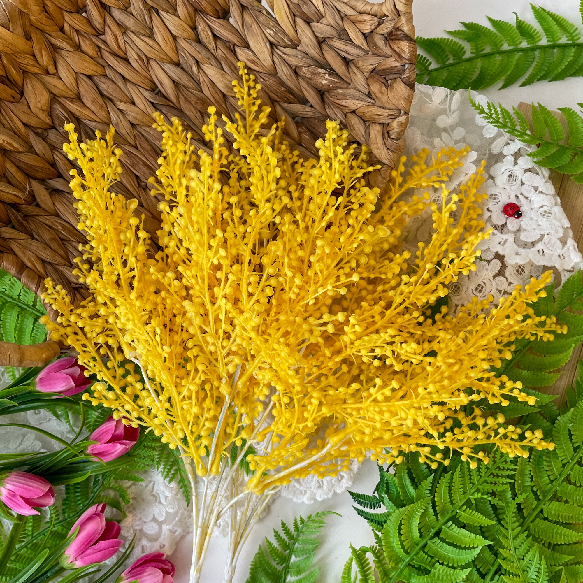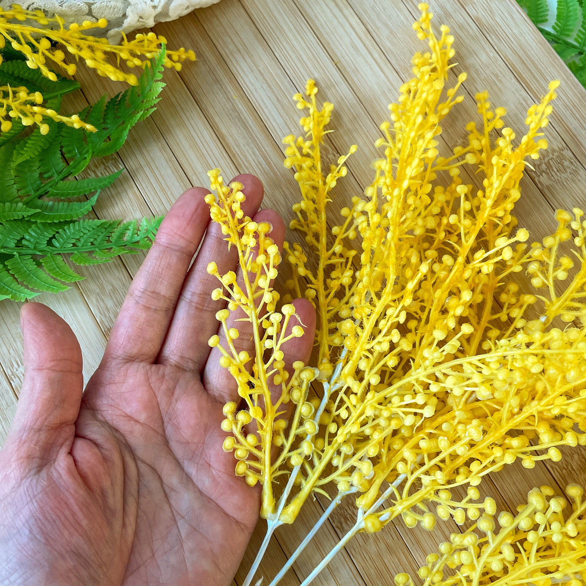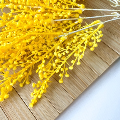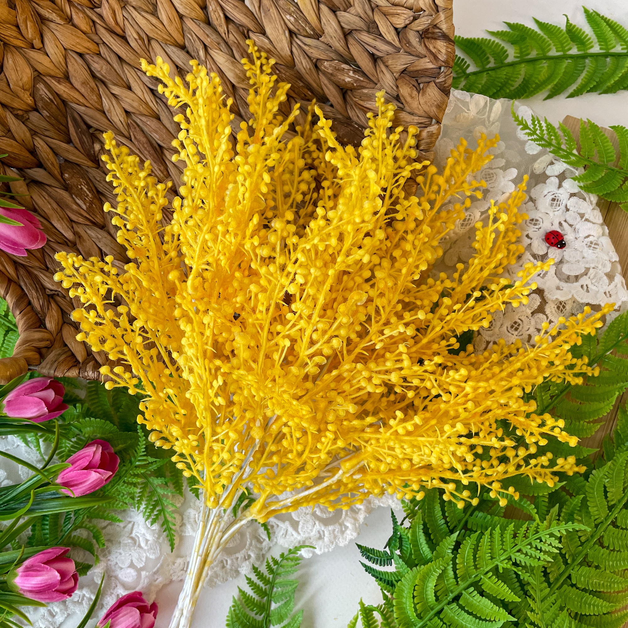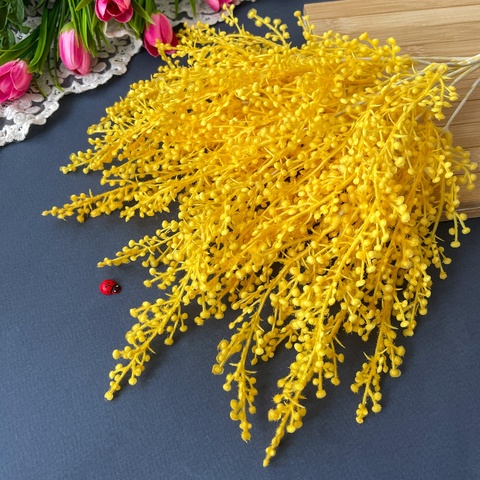 Искусственная мимоза идеально подходит для создания букетов, композиций или как самостоятельный элемент декора в интерьере, добавляя яркие акценты в любой комнате. Мимоза искусственная реалистичная может использоваться для декора, в букете, венке или как отдельный акцент на столе. Ее насыщенные оттенки и текстура делают любую композицию более интересной и привлекательной. Декоративные цветы — это выбор для тех, кто ценит красоту и долговечность в декоре.