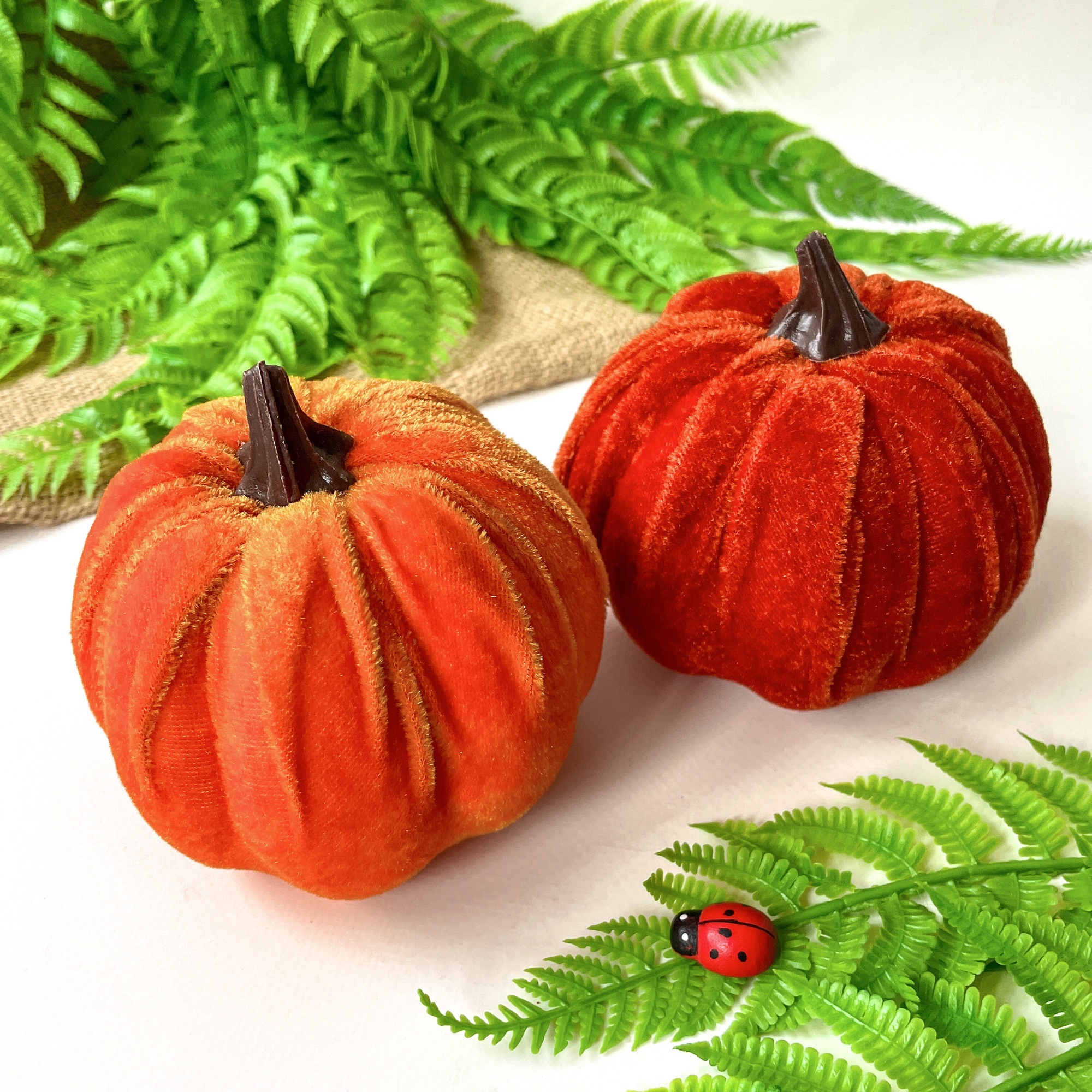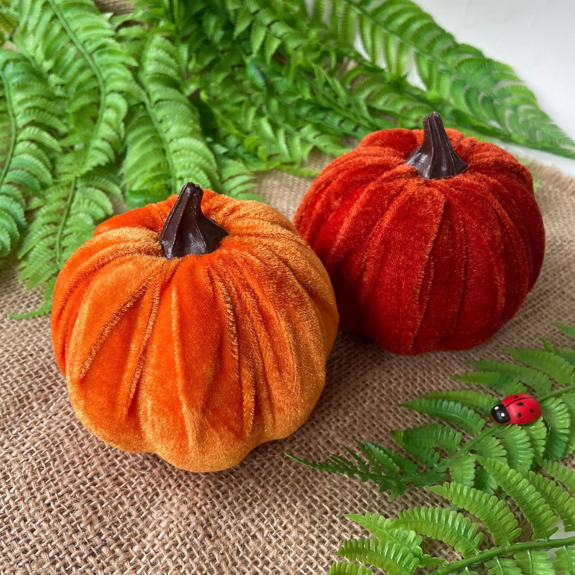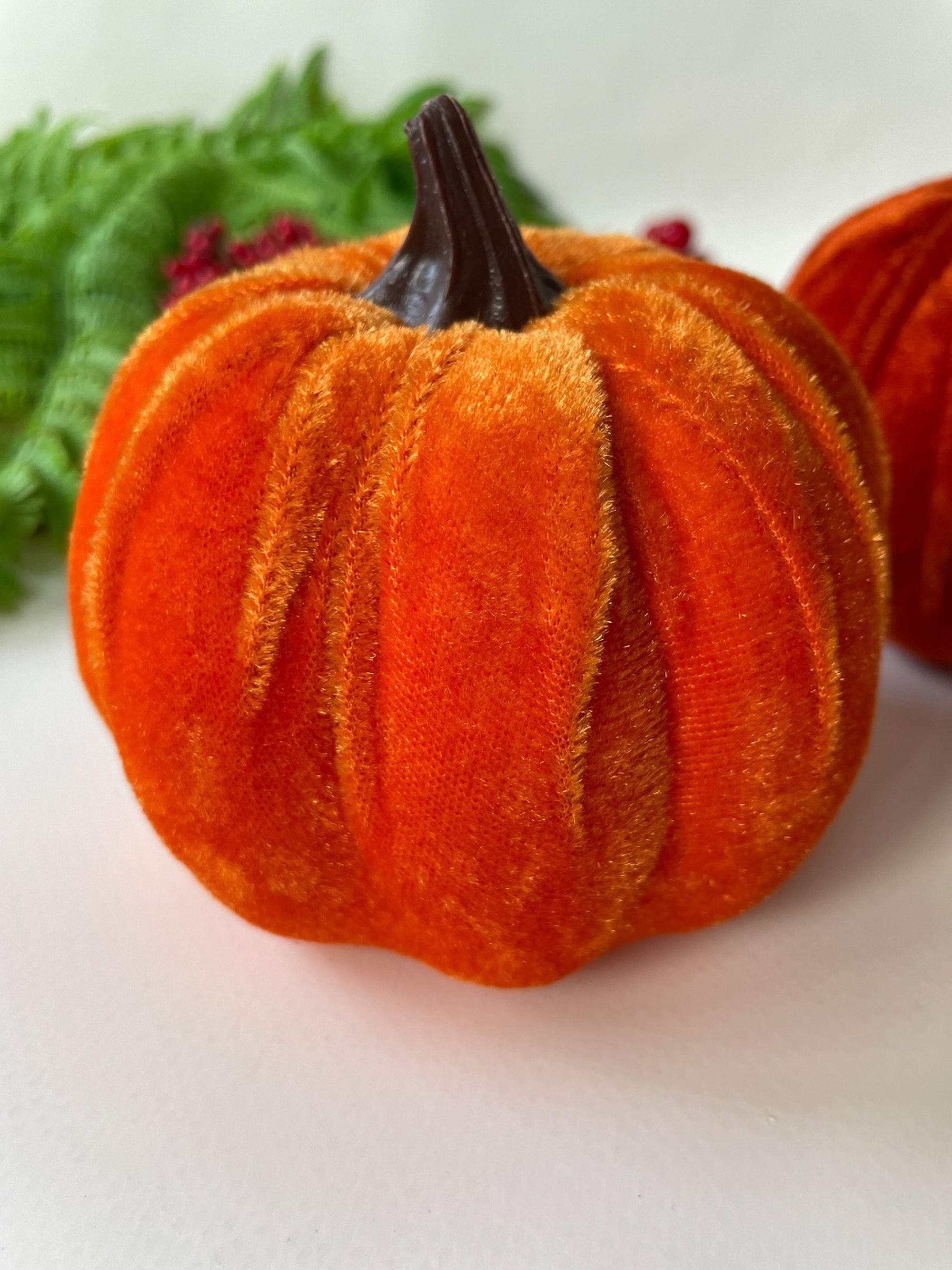 Бархатные тыквы идеально подходят для сочетания с другими осенними элементами декора, такими как осенние листья, ветки, шишки, ягоды, свечи и натуральные материалы. Их можно использовать как самостоятельный акцент или комбинировать в группах для создания более выразительного эффекта.