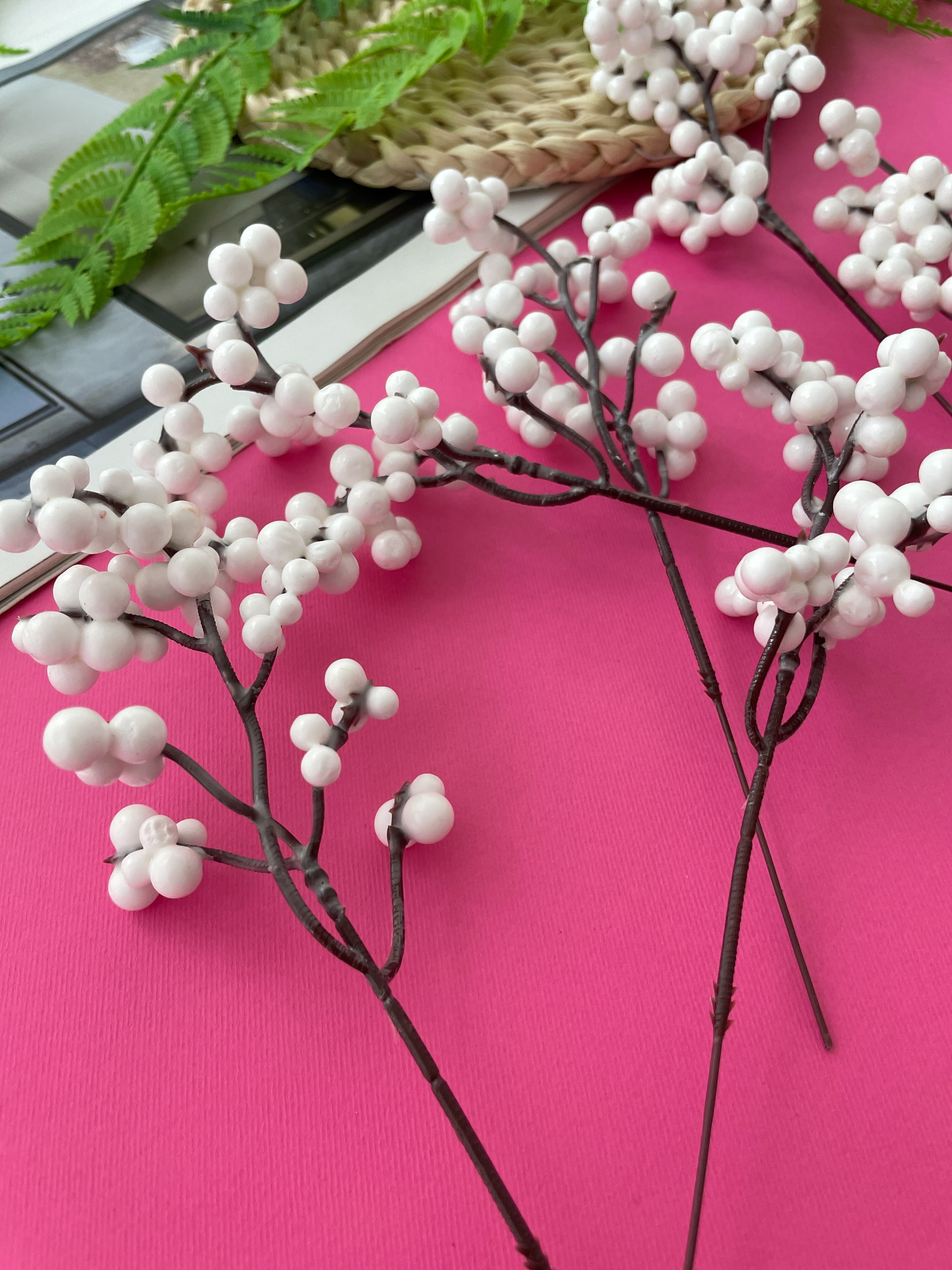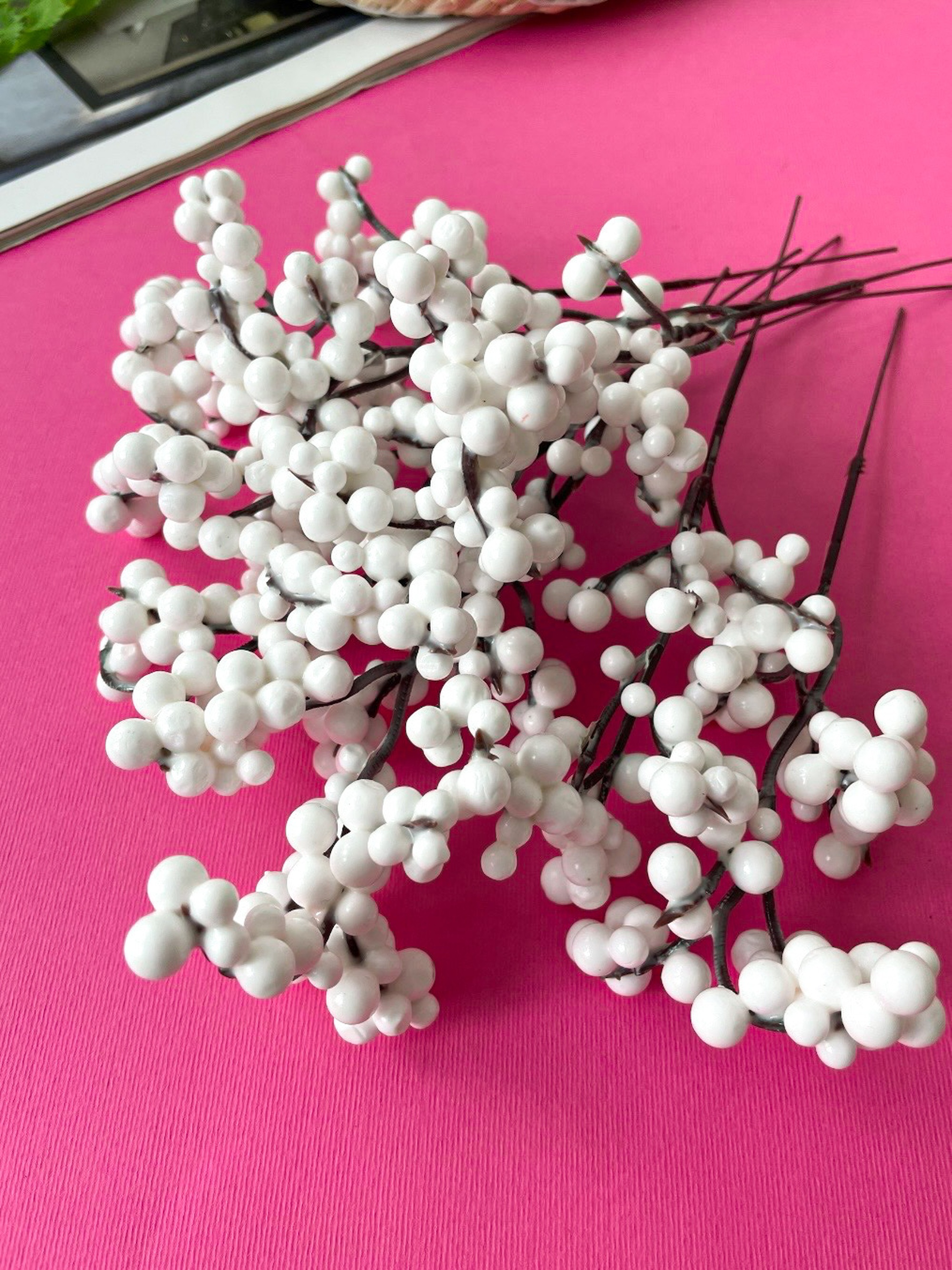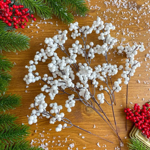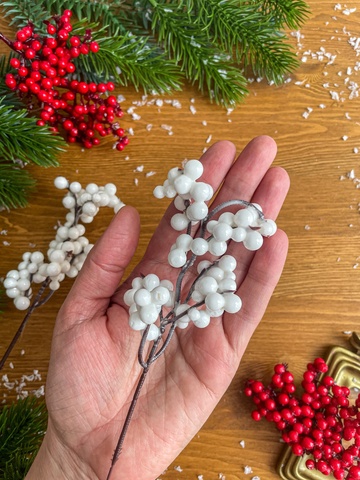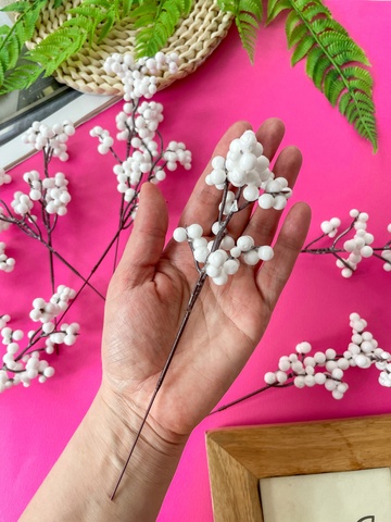 Ягоды искусственные белые на ветке, ягодные ветки, муляжи для декора, шишки искусственные, флористики, интерьера фотосессии. Ягоды искусственные, ягоды шиповника, бузины, шишки незаменимы при создании флористических букетов, декора упаковки или оформлении фотозон, свадебных экспозиций на новогоднюю или осеннюю тематику. Ягоды рябины используются в украшении аксессуаров, одежды, костюмов, интерьеров к празднику, как осенние украшения для декора.