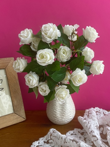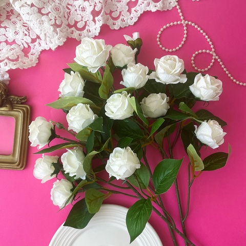 Искусственные розы для декора — это идеальное решение для создания уютной и стильной атмосферы в вашем интерьере. Наши реалистичные цветы розы выглядят так натурально, что их трудно отличить от живых. Каждый букет кустовых роз тщательно изготовлен из высококачественных материалов, что обеспечивает долговечность цветов на протяжении многих лет. Ветки кустовой розы, украшенные белыми бутонами, добавляют элегантности и свежести в любое пространство. Искусственные цветы прекрасно подойдут для оформления столов, создания красивых композиций в вазах или как часть более сложных декораций.