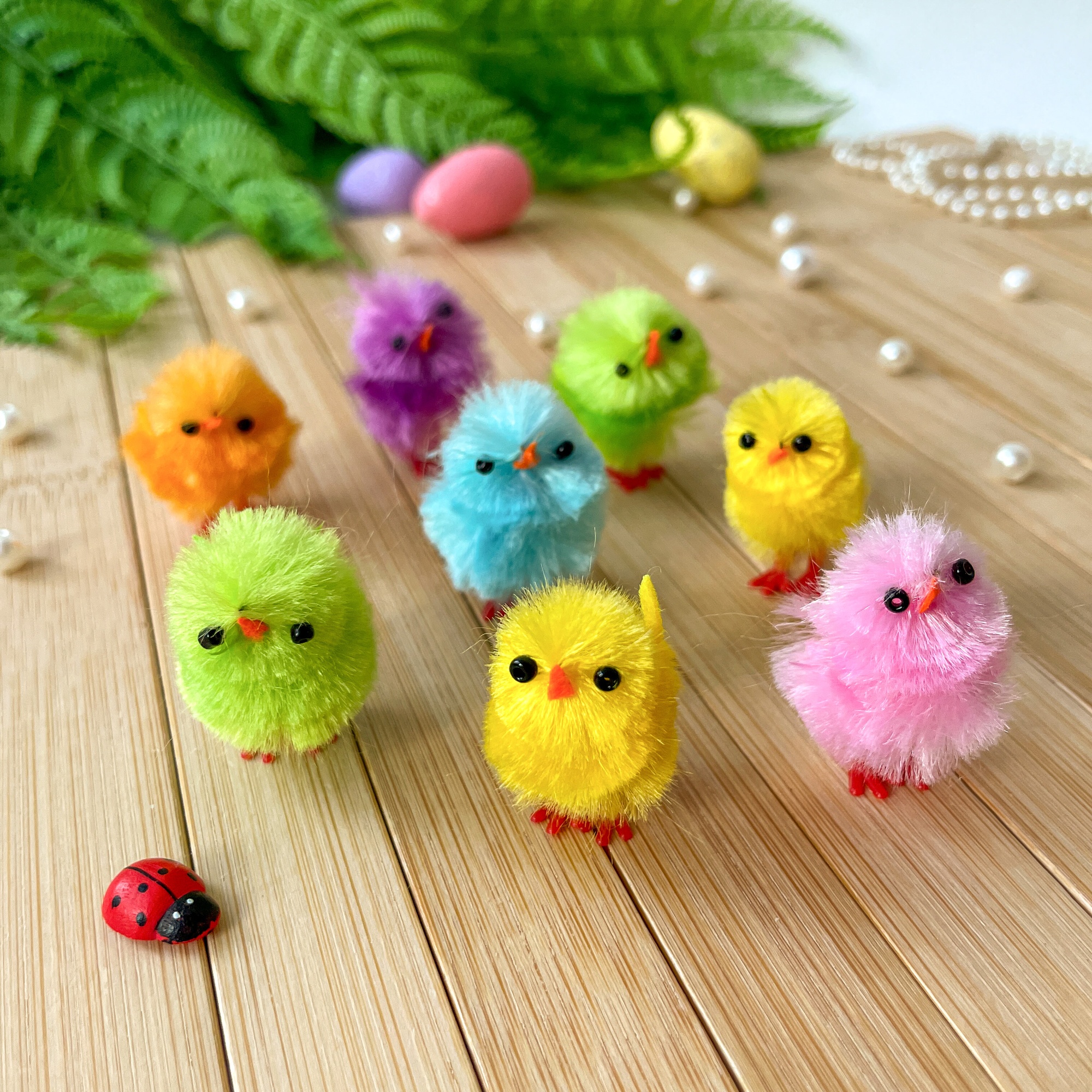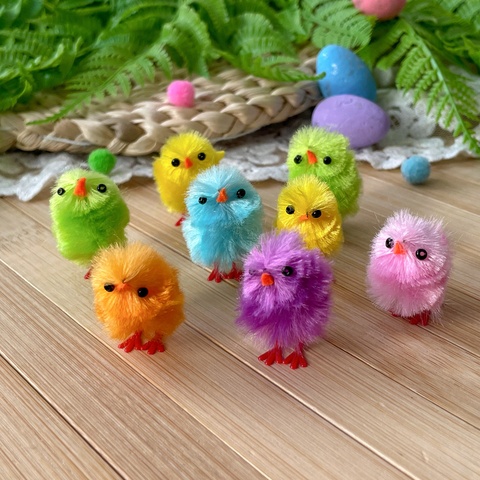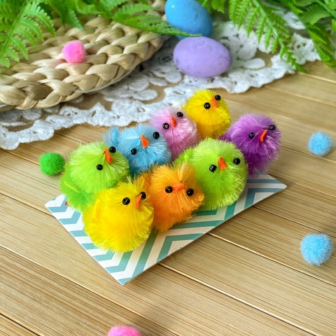 Цыплята декоративные мини разноцветные, пушистые, 2*4 см, набор 8 шт.