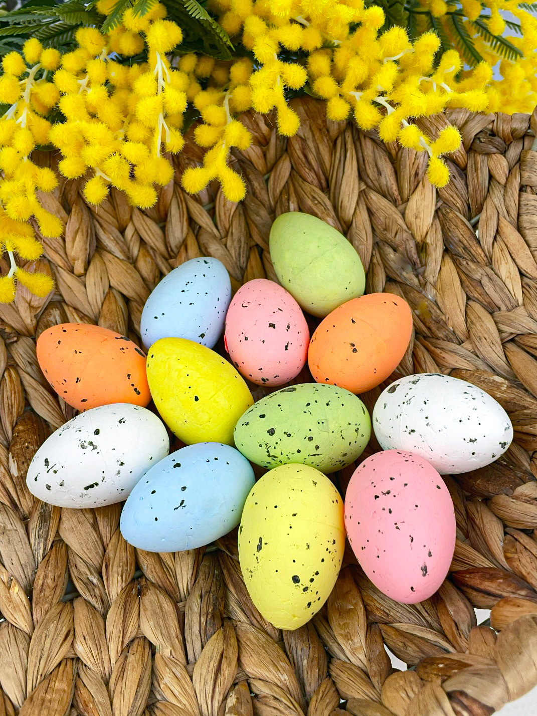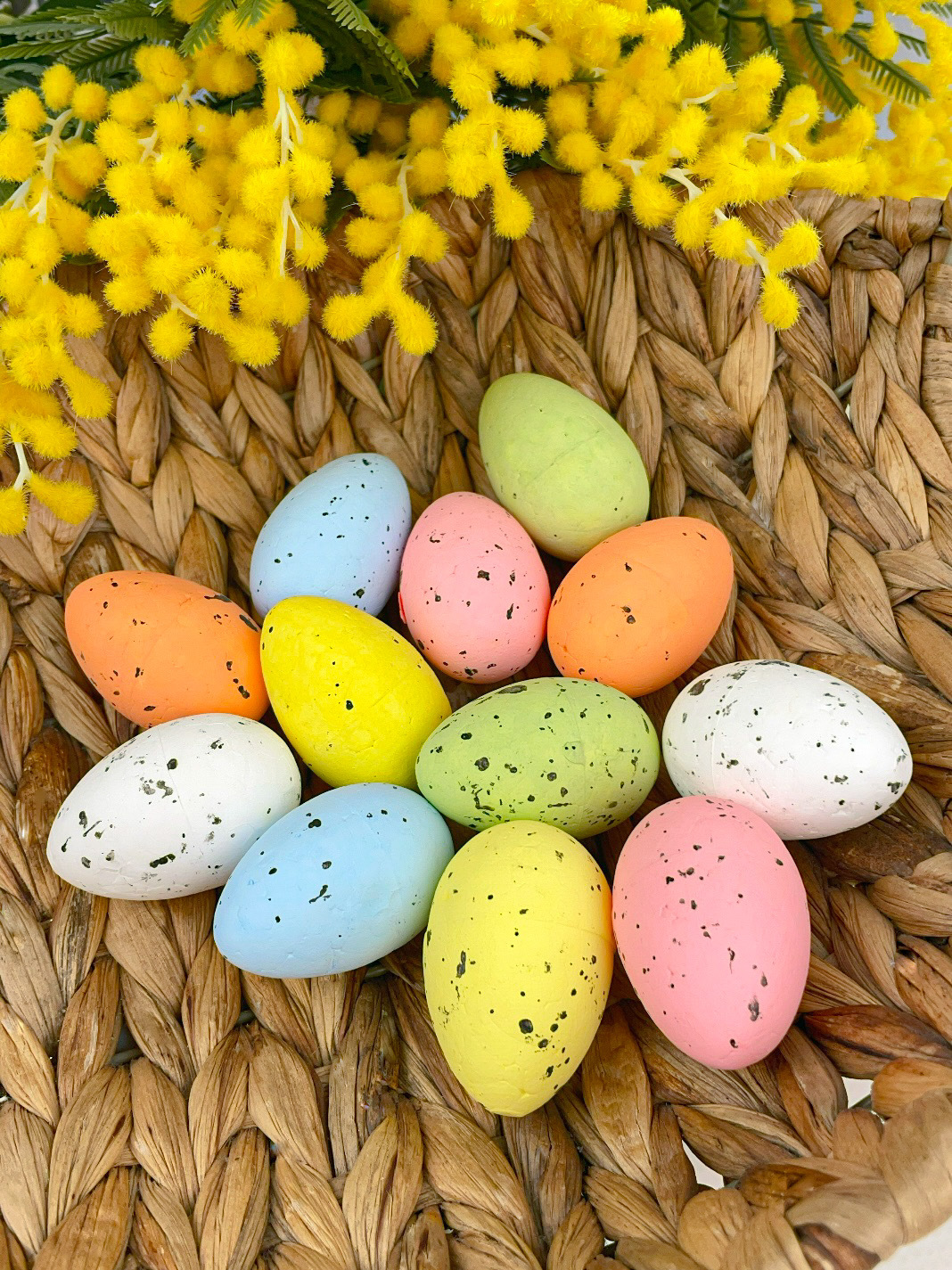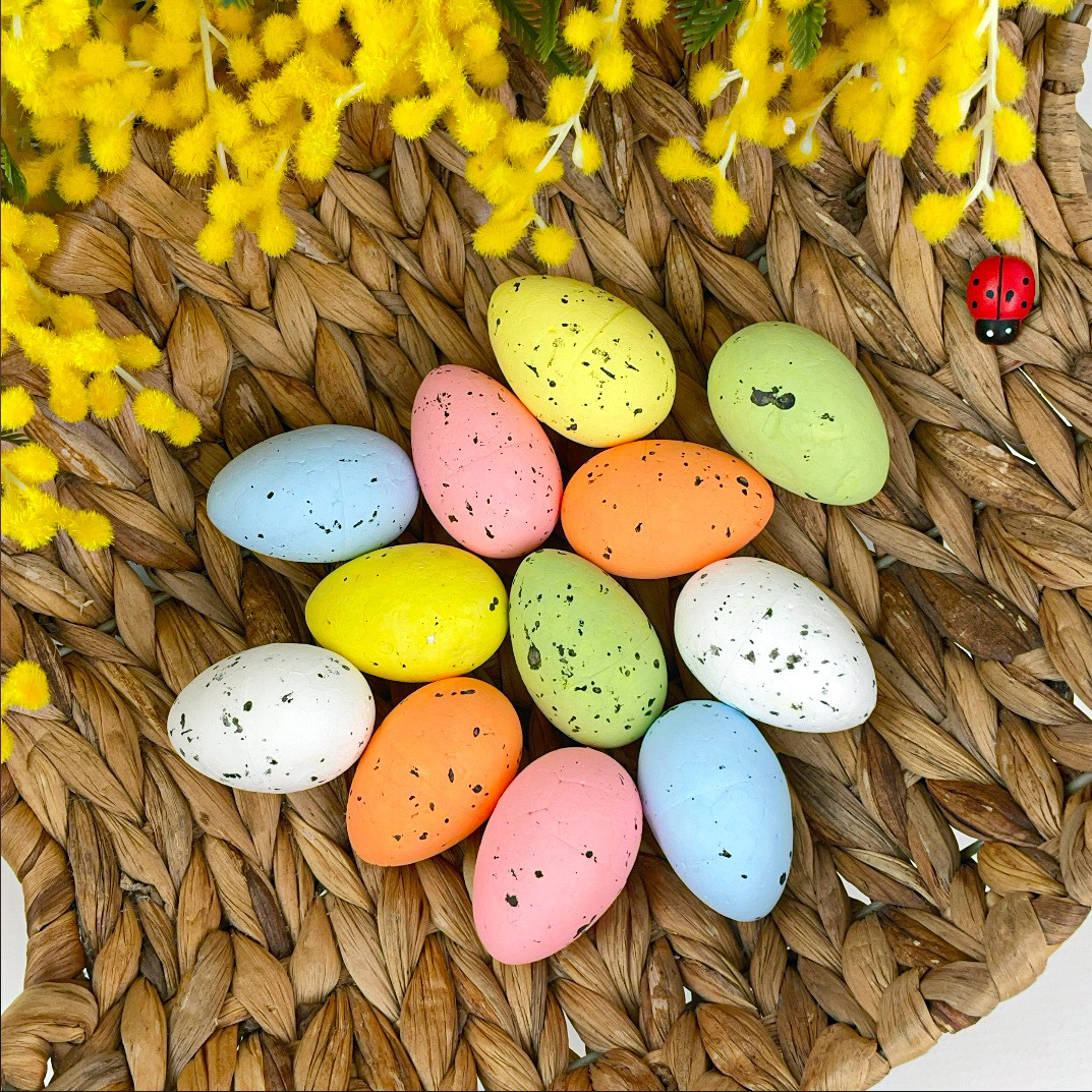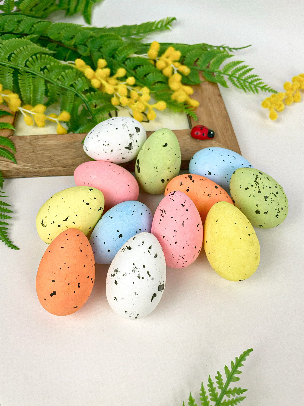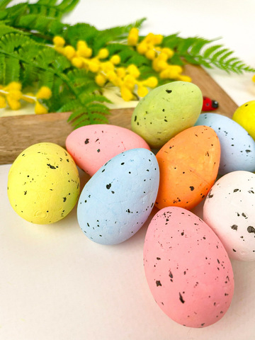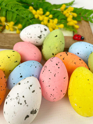 Пасхальный декор. Яйца декоративные пастельные разноцветные выполнены из пенопласта. Набор пасхальных яиц идеально подойдет в качестве пасхальной заготовки для детского творчества, для украшения и создания декоративных элементов для празднования Пасхи.