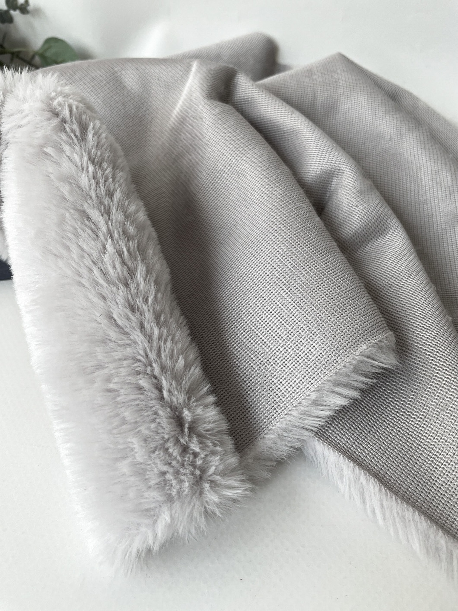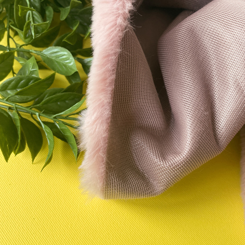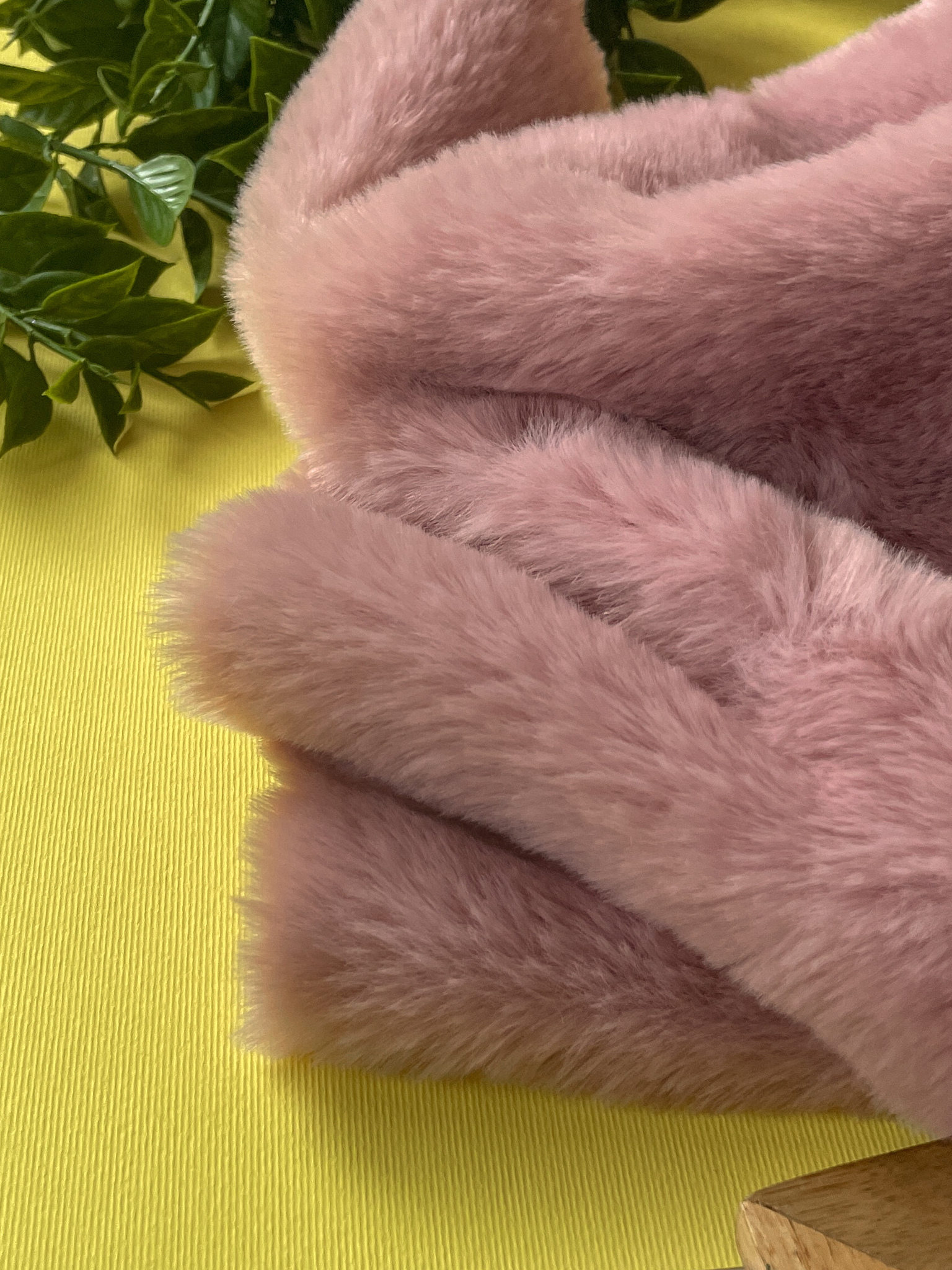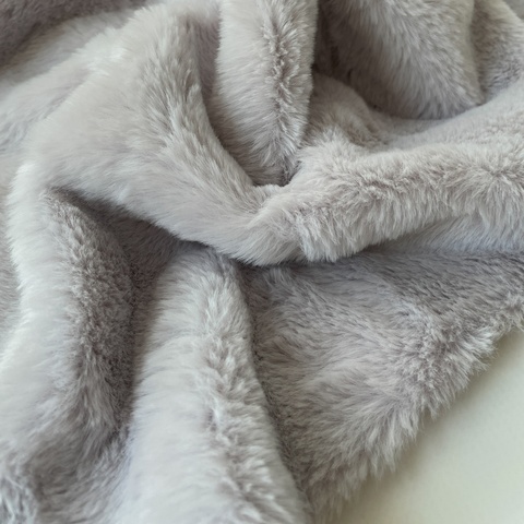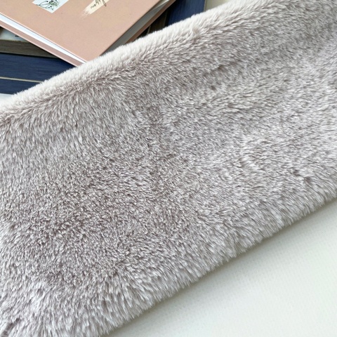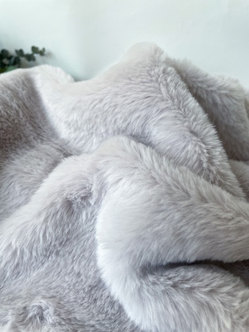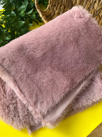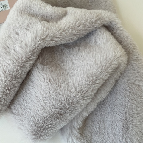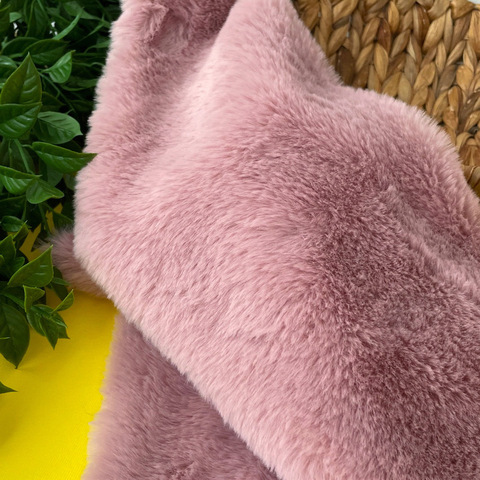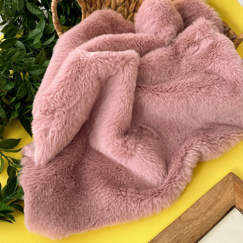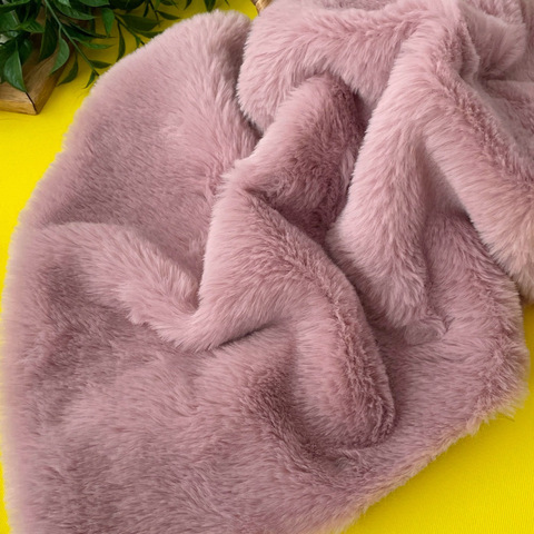 Представленный отрез меха очень нежный на ощупь, мягкий и пушистый, с густым ворсом. Высота ворса примерно 1,5 см. Основа трикотажная, тянется немного.