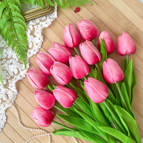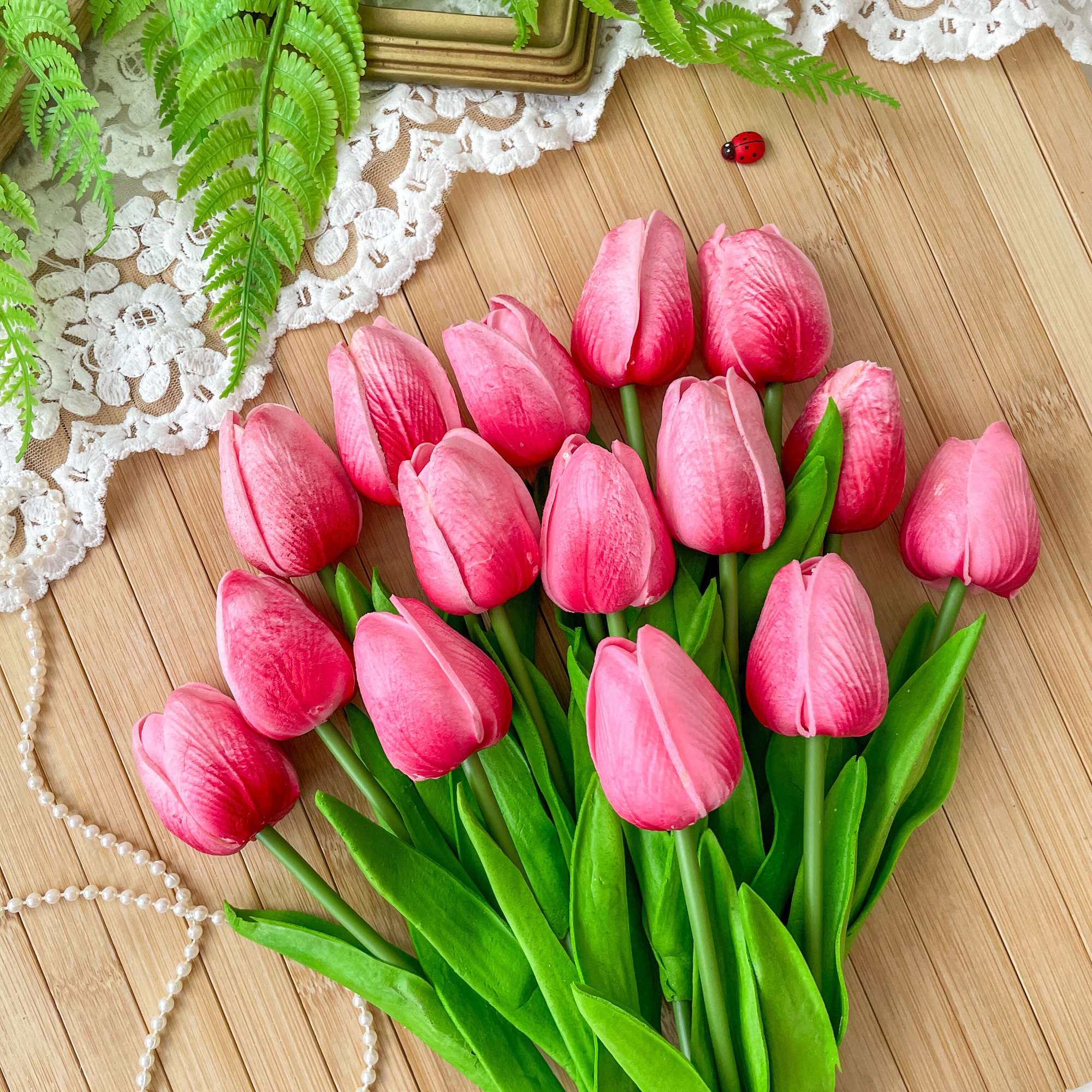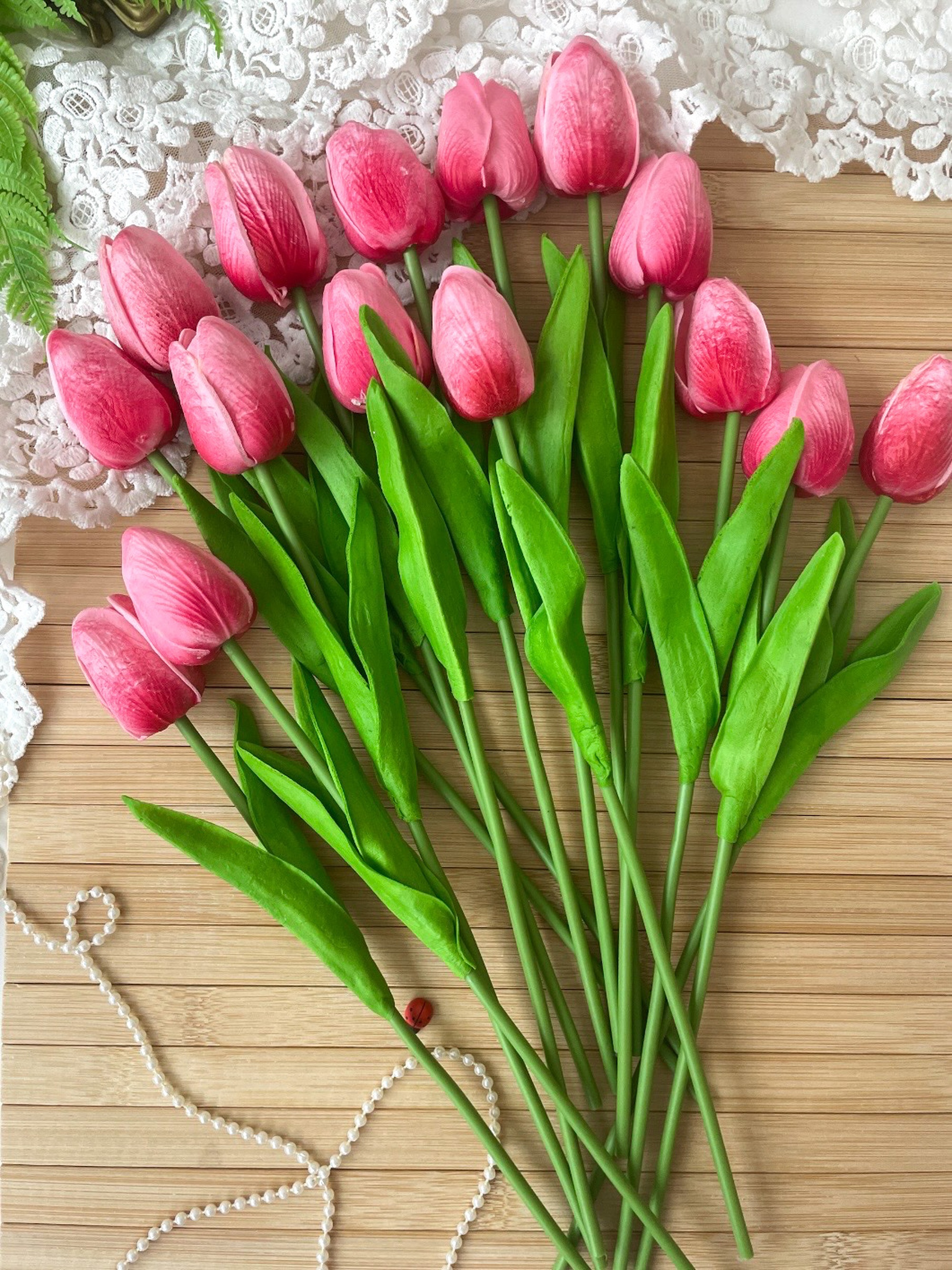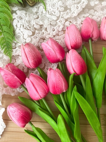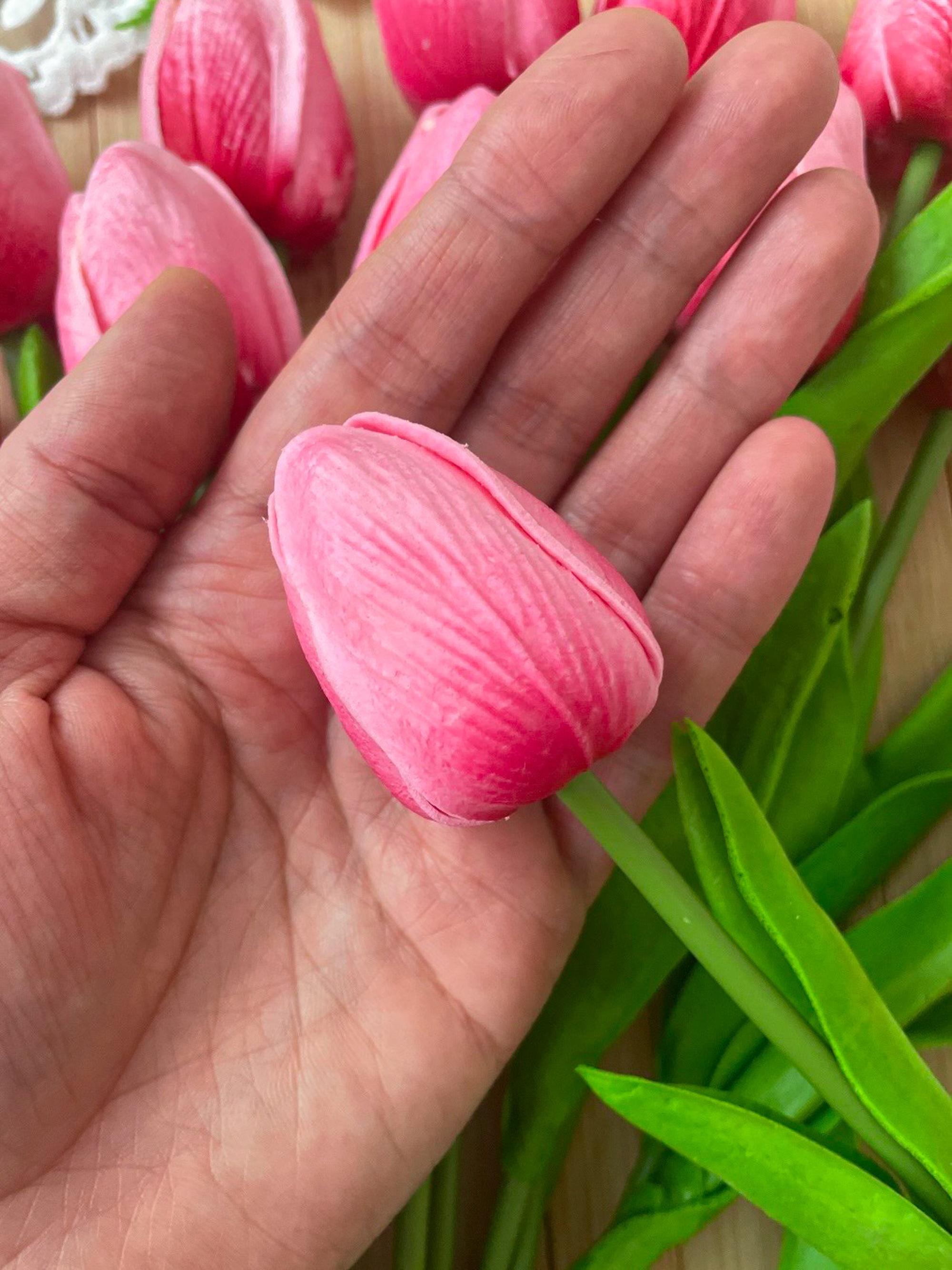 Тюльпаны искусственные — это элегантные и яркие декоративные цветы, идеально подходящие для оформления интерьера и создания праздничной атмосферы. Реалистичные по виду и текстуре, эти весенние цветы идеально подходят для декора дома, весеннего и пасхального оформления. Благодаря высококачественным материалам и реалистичной детализации, такие ярко-розовые тюльпаны выглядят как живые, наполняя пространство свежестью и красотой. Тюльпаны силиконовые станут замечательным акцентом в любом интерьере, подчеркнут тепло и уют вашего дома, а также станут прекрасным подарком на Пасху и другие весенние праздники.