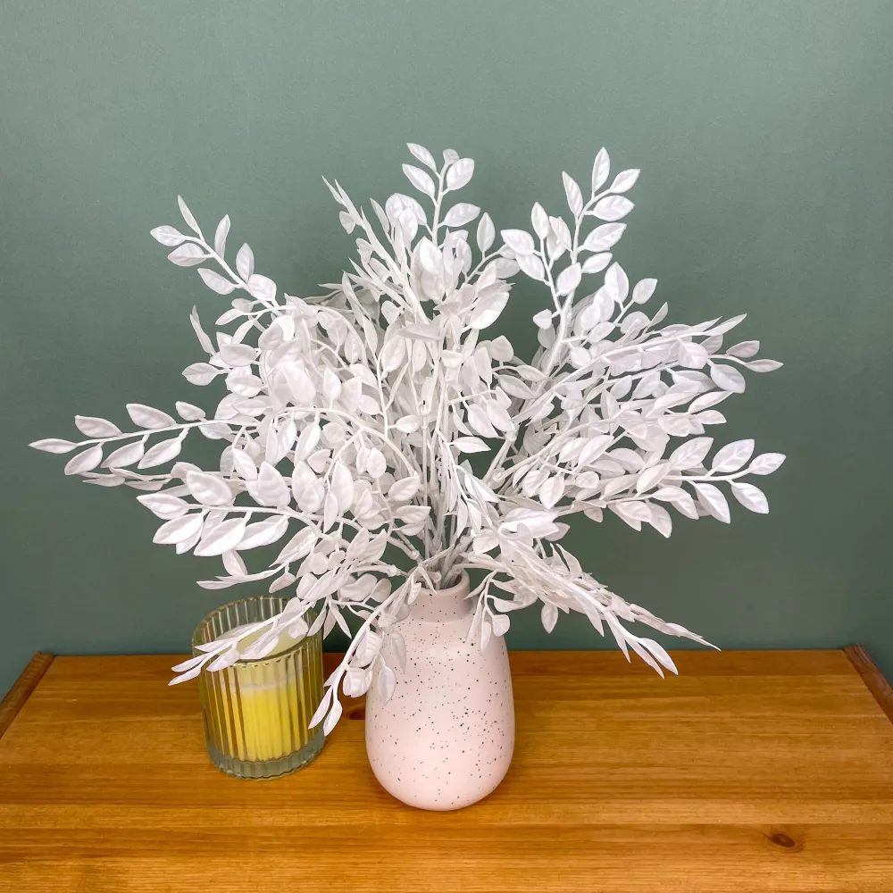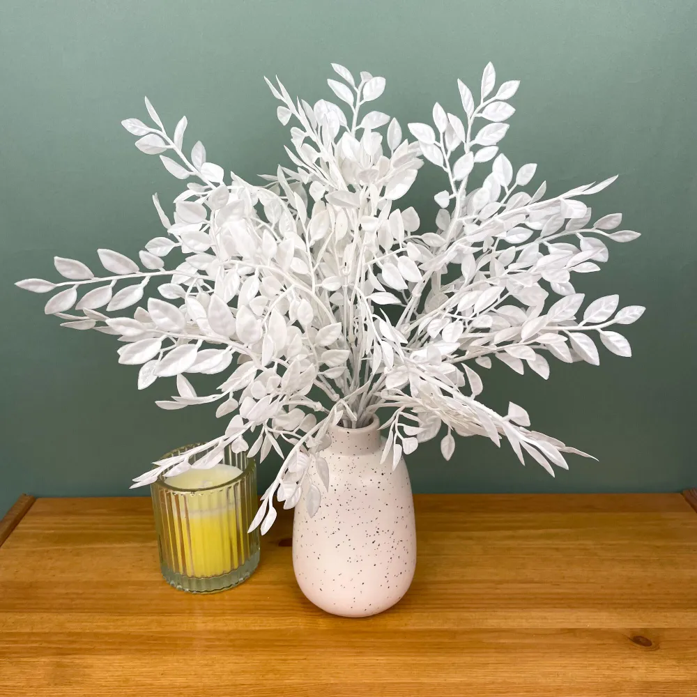 Белые искусственные ветки для декора можно использовать при оформлении интерьера дома и офиса, ресторана и кафе, дачи и веранды. С помощью декоративного букета зелени можно создать массу цветочных композиций для любого случая. Декоративное растение отлично будет смотреться в "осенних" композициях. Цветочные композиции с добавлением искусственной зелени выглядят роскошно.
